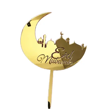 Hstyle New tide Gold Acrylic Eid Mubarak Cake Topper for Ramadan Decorations Gold Cupcake Toppers for Party Holiday Supplies