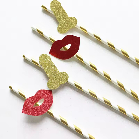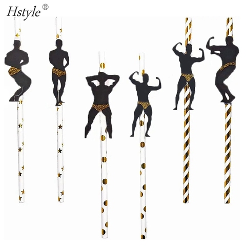 Bachelorette Party Strohhalme 6PCS Tänzer Golden Straw Naughty Lustige Trinkhalme Mädchen Party Hen Party Gefälligkeiten SC057
