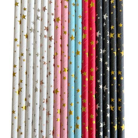 Hstyle Großhandel Biologisch abbaubares Papier 100 Pink /Gold Trinkhalme für Party
