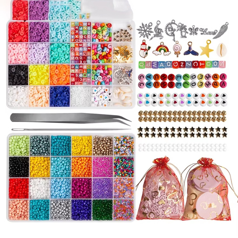 7200pcs 4mm Glass Seed Beads and 300pcs Alphabet Letter Beadsor Party Gifts