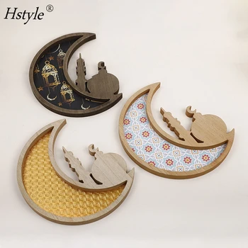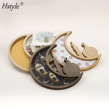 Hstyle 2025 Wooden Moon Castle Dessert Tray Ramadan Mubarak Eid Decorations Party Tableware Tray Home Art Decoration Crafts