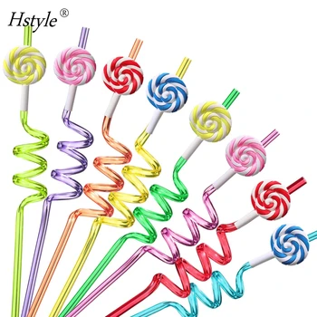 Candy Party Supplies Drinking Plastic Straws Reusable 24 for Kids Sweet Candy Lollipop Birthday Party Favors HS1127