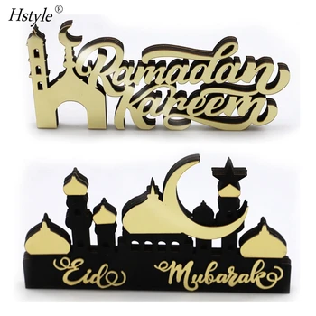 Hstyle 2025 Hot Selling Wood Eid Mubarak Table Centerpiece Islamic Mosque Ornaments for Home Table Decoration Table Mat