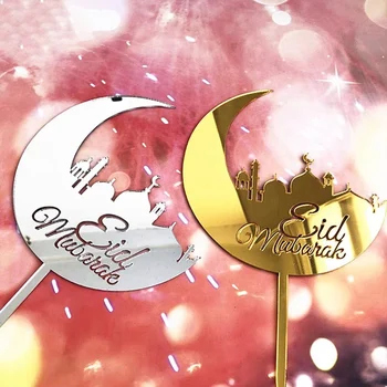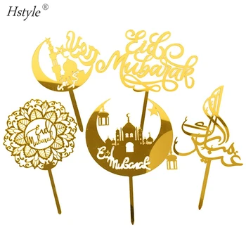 Hstyle New tide Gold Acrylic Eid Mubarak Cake Topper for Ramadan Decorations Gold Cupcake Toppers for Party Holiday Supplies
