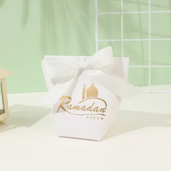 Hstyle Hot Selling Eid Mubarak Party Favor Bags with Bow Ribbon Paper Bags for Muslim Festival Party Favors Gifts Paper Boxes