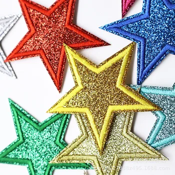 Hstyle Cheap Price Fabric Iron-On Embroidered Big Star Patches PVC Shaped for Shirts Garment Caps Bags Use