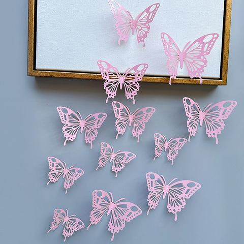 12 Stuks Diy Spiegel Vlinder Cake Cupcake Toppers 3d Spiegel Muurstickers Home Sticker Verwijderbare Kinderkamer Slaapkamer Decoratie
