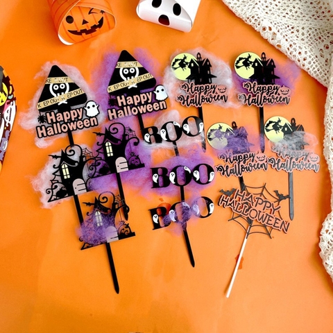 Hstyle Happy Halloween Acryl Cake Topper Trick Of Traktatie Cake Topper Halloween Pompoen Cupcake Decoraties Cake Accessoires