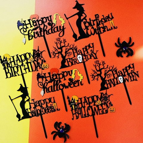 Hstyle Acryl Halloween Thema Cake Topper Happy Halloween Cake Toppers Happy Birthday Cake Inserts Voor Kinderen Volwassenen Feestdecors