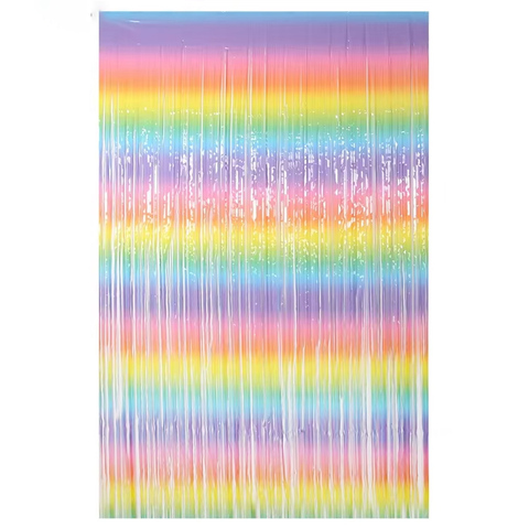 3.3*6.6 피트 마카롱 무지개 호일 프린지 커튼 배경 파티 배경 사진 부스 소품을위한 다채로운 깃발 파스텔 커튼