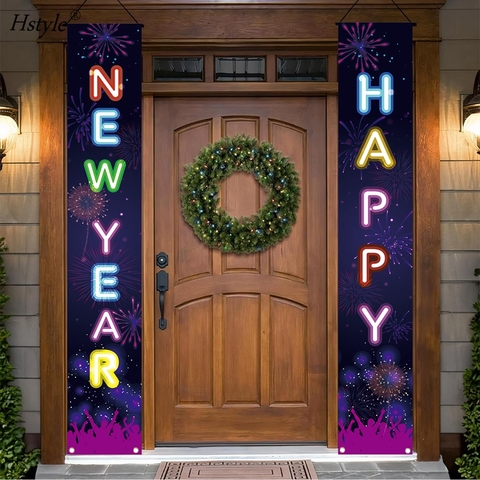 Feliz Año Nuevo Banner de puerta con fuegos artificiales Suministros de fiesta de Nochevieja 2024 Cartel de porche Suministros de fiesta NYE Decors SD2033