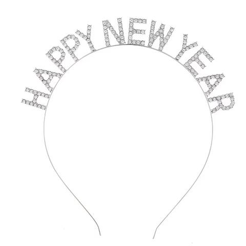 FELIZ AÑO NUEVO Diadema Tiara Fiesta Accesorio para el cabello Tocado de letras de cristal para mujeres Niñas Decoración de fiesta de año nuevo SD1858