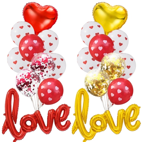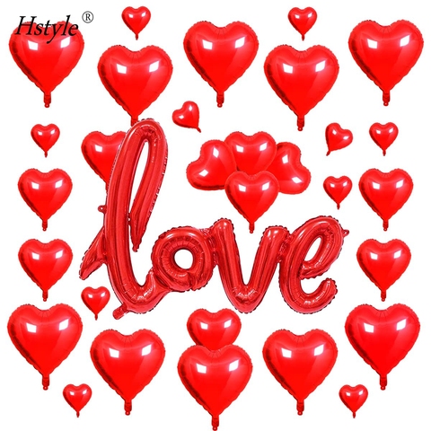 발렌타인 데이 결혼 기념일 약혼 신부 샤워를위한 Hstyle LOVE 알파벳 편지 호일 풍선과 라텍스 풍선