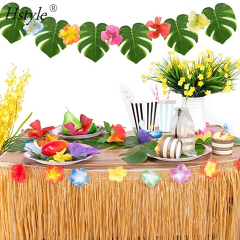 Hstyle Luau Nhiệt đới Hawaii Bảng Cỏ Váy/Hawaii Hoa Lei Vòng Hoa Dâm Bụt Hoa Lá Đảng Trang Trí Thiết Lập