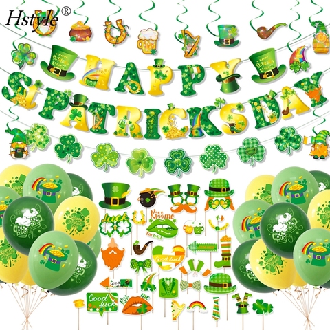 Happy St Patricks Day En Lucky Groene Klaver Papier Banners Groen Goud Latex Ballonnen Foto Rekwisieten Hangende Wervelingen Party Kit E3226