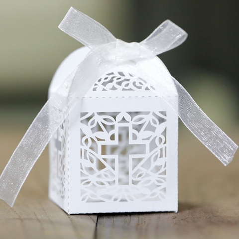 Hstyle Croix Laser Cut Bonbons Boîtes avec Rubans Party Favor Petites Coffrets Cadeaux pour Baby Shower Premier Anniversaire Baptême Faveur