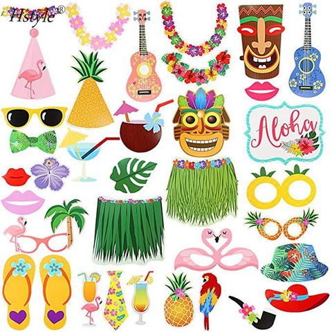 Aloha Tropical Tiki Havaiano Flamingo Estilo Photo Booth Props DIY Photo Booth para Casamento Praia Verão Pool Party PFB272