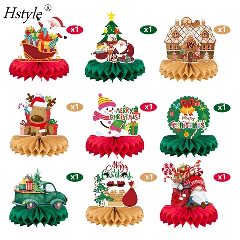 9PCSクリスマスハニカムデコレーションセットクリスマスハニカムセンターピーストッパークリスマス3Dデスクトップデコレーション用品HS1455