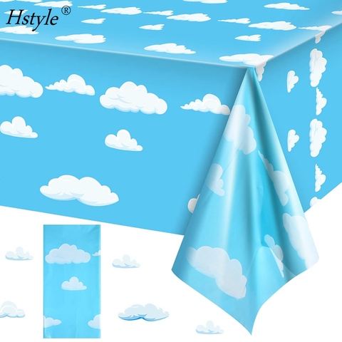 Festas de aniversário azul céu branco, suprimentos de festa de aniversário, topo de desenho animado, capa de mesa, desenho animado, bandeira de mesa 54x108 polegadas hs649