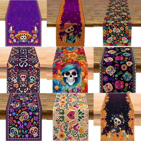 Hstyle messicano giorno dei morti Runner da tavolo Mexico Dia De Los Muertos zucchero teschio copertura del tavolo sala da pranzo tavolo da cucina decori