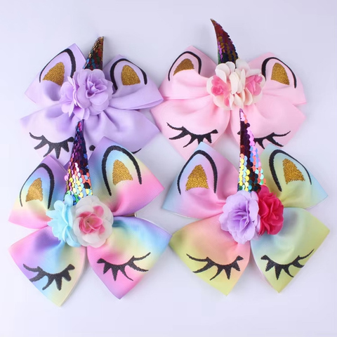 Опт и розница Бестселлер блесток Единорог милые ленты банты для волос FG201