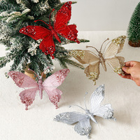 Decorazione Natalizia a Forma di Farfalla Grande con Nastro Glitterato e Strass, Ornamento Artificiale per Albero di Natale, Vendita all'Ingrosso