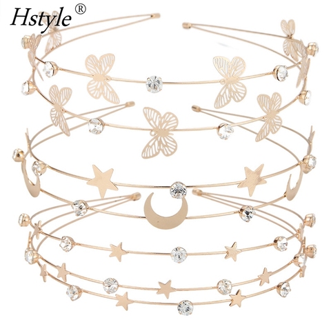 Hstyle kelebek yıldız ay kafa Hollow Metal kafa alaşım Tiara başlığı saç aksesuarları kız düğün doğum günü hediyeleri
