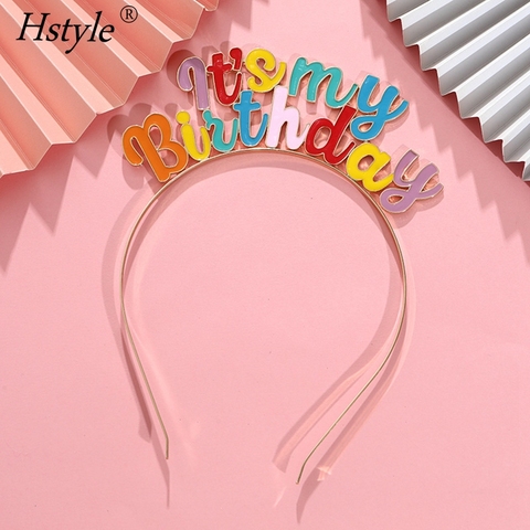 Kız doğum günü bantlar kadınlar mutlu doğum günü taç başlığı renkli doğum günü saç bandı aksesuarları saç çember taç SD2374