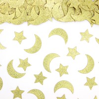 100 конфетти в стиле Луны и звезды, упаковка для свадебного дня рождения ребенка, Золотая Звезда и луна, бумажное конфетти с блестками