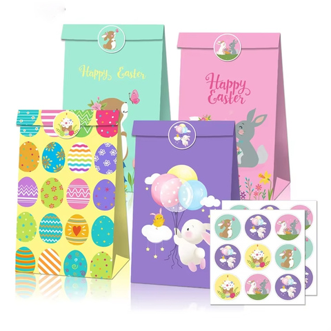 กระเป๋าใส่ของขวัญวันอีสเตอร์,ถุงกระดาษคราฟท์12ชิ้นพร้อมสติกเกอร์ DIY ถุงใส่ลูกอมของขวัญสำหรับเด็กอุปกรณ์งานปาร์ตี้อีสเตอร์ SD1688