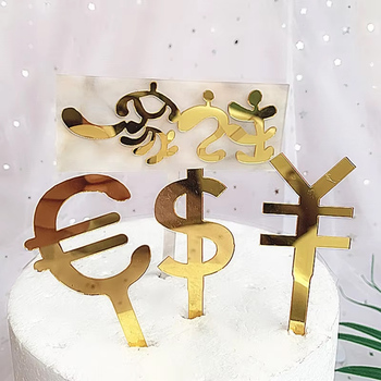 ของตกแต่งเค้กดอลล่าร์เงินสีทองสำหรับคัพเค้กสีดำทองอุปกรณ์งานปาร์ตี้วันเกิดของตกแต่งขนมอบ PQA271