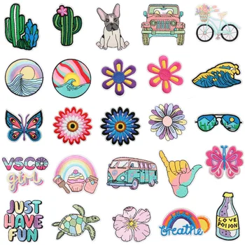 Hstyle Creative Style Summer Theme Flower Animal Rainbow Butterfly Iron on Embroidery Patches for Clothes