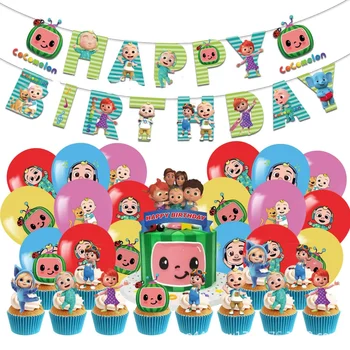 Hstyle SET494 Watermelon Party Decoration Supplies Pull Flag Balloon Cake Inserts Children's Birthday Party Decoration Set