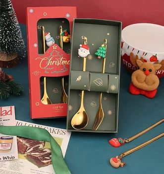 Wholesale Eco-Friendly Golden Christmas Tableware Set Christmas Tree Design Spoon Fork Hotels Parties Cake Plastic Flatware Sets