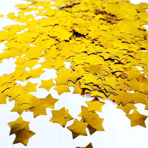 กระดาษโปรยรูปดาวสีทองขนาด0.6นิ้ว1.5ซม. กระดาษฟอยล์สีทองประกายสำหรับตกแต่งงานปาร์ตี้หรือเติมลูกโป่ง100กรัม