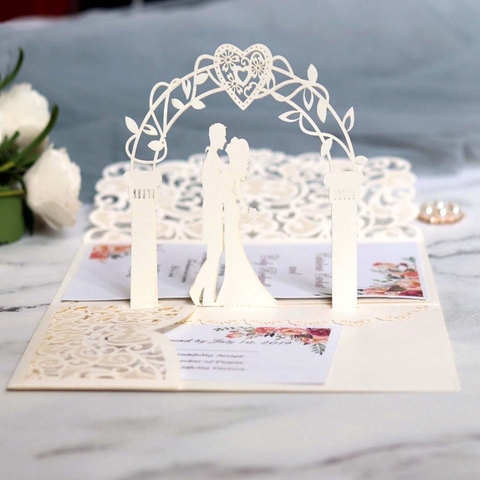 Hstyle Hollow Laser Cutการ์ดเชิญงานแต่งงานเปล่าพิมพ์กระดาษและซองจดหมายเจ้าบ่าวและเจ้าสาว 3D การ์ดอวยพร HS1781